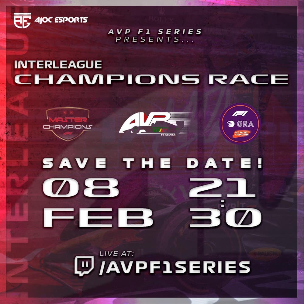 A AVP F1 Series tem o prazer de anunciar o seu primeiro evento! ⭐️ Trata-se da Interleague Champions Race, uma corrida que vai juntar os melhores pilotos do grid da AVP F1 Series e da liga portuguesa Master Champions